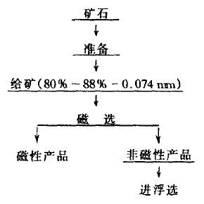 從曲線圖可明顯看出:在由馬列耶夫斯克多金屬礦石獲得的磁性產品酸浸時,在硫酸消耗量90kg/t,-74μm粒級含量為95%,浸出時間為6h,浸出溫度為90℃時,可獲得令人滿意的指標。這些參數是浸出磁性產品獲得最終產品的驗證試驗(圖3)的依據。